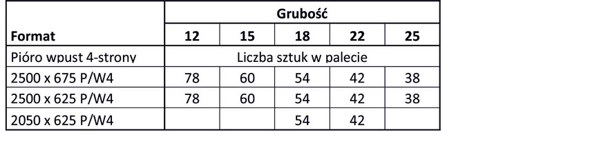 -          płyta z krawędziami czterostronnie frezowanymi na pióro i wpust.