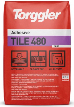 Zaprawa TILE 480 jest cementowym klejem w proszku w kolorze szarym i białym, na bazie cementów o wysokiej wytrzymałości, wyselekcjonowanych kruszyw, o dużej zawartości procentowej żywic syntetycznych i specjalnych domieszek. Klej szczególnie polecany jest do przyklejania wszystkich rodzajów płytek dużych formatów z ceramiki, gresów porcelanowych lub szkliwionych albo płytek z kamienia naturalnego, pod warunkiem, że płytki te są odporne na wodę i niewrażliwe na przebarwienia i odkształcenia. Zalecany do stosowania na podłożach podlegających odkształceniom. Po zmieszaniu z wodą otrzymujemy klej, który jest łatwy w użyciu, tiksotropowy, plastyczny i zapewniający przyczepność na wszelkiego rodzaju powierzchniach, nawet na starych okładzinach ceramicznych. Klej nie spływa ze ścian i zapobiega zsuwaniu się płytek. Długi czas otwarty ułatwia układanie płytek nawet w ciepłych i wietrznych warunkach atmosferycznych. Odkształcalność związanego kleju umożliwia kompensowanie ruchu podłoża, co sprawia, że jest to rozwiązanie idealne dla silnie obciążonych podłoży. Produkt ten jest odporny na działanie cykli zamarzania i odmarzania. TILE 480 zgodnie z normą 12004 jest klasyfikowany jako klej klasy C2 TE S1. Ze względu na bardzo niską emisję lotnych związkó organicznych produkt jest certyfikowany jako EC 1 Plus zgodnie z wymaganiami GEV.