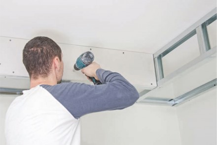 Wykonanie sufitu podwieszanego polega na mocowaniu płyt gipsowo-kartonowych do konstrukcji nośnej, składającej się z wieszaków, łączników oraz kształtowników (profili CD i UD), umożliwiających ustawienie powierzchni sufitu z uwzględnieniem żądanej formy. Aby ułatwić sobie prace oraz zapewnić jak najlepsze parametry konstrukcji, warto postawić na rozwiązania systemowe – wszystkie elementy składowe są wówczas do siebie ściśle dopasowane. Zaczynamy od wyznaczenia linii przebiegu sufitu. Pamiętajmy, że jego minimalna odległość od stropu musi wynosić 45 mm. Podklejamy taśmą akustyczną profile UD i przytwierdzamy je do wyznaczonych linii kołkami szybkiego montażu. Kolejnym krokiem jest montaż wieszaków kotwowych do stropu metalowymi kołkami sufitowymi. Ich odstępy i rozstaw zależą od rodzaju oraz ciężaru planowanej zabudowy.