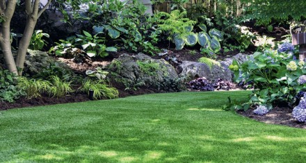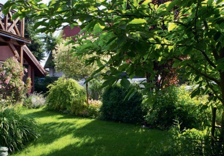 Zacienione rabaty oraz zakątki mają tajemniczy i romantyczny charakter. Są doskonałym punktem wyjścia do zbudowania naturalistycznych, sentymentalnych lub rustykalnych aranżacji. Wystarczy je wzbogacić o detale podkreślające nieco ich dziki nastrój. Drewniana lub żeliwna ławeczka ustawiona w cieniu może dawać nam wytchnienie podczas upalnych dni. Taki sam efekt da zawieszenie wśród drzew hamaka. Ukojenie i wyciszenie przyniesie niewielka fontanna lub umieszczone w bujnej roślinności źródełko. Z korzyścią dla ptaków, owadów i drobnych ssaków będzie ustawienie pod spustem rynnowym zbiornika na deszczówkę w postaci drewnianej beczki. Pomyślmy też o sztucznym oświetleniu, które pomoże wydobyć rośliny z mroku. Różnego rodzaju ogrodowe rzeźby są nie tylko wdzięcznym elementem kompozycji, ale rozjaśnią i ożywią ciemną zieleń dominującą w aranżacji.