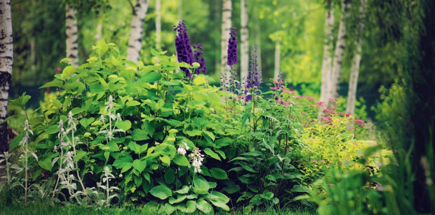 Punktem wyjścia do stworzenia efektownego ogrodu z dala od słońca jest staranny dobór roślin. Podstawowym kryterium jest tolerancja dla deficytu światła. W cieniu najlepiej poradzą sobie te gatunki i odmiany, które wywodzą się z lasów. To duża grupa roślin, która lubi rozproszone światło – w mniejszym lub większym stopniu nie wymagają one rzęsistego doświetlenia i ciepła. Przed zakupem roślin i zaprojektowaniem nasadzeń należy sprawdzić, które miejsca są całkowicie zacienione, a do których światło dzienne dociera np. tylko o poranku lub późnym popołudniem. Na stanowiska północne najlepiej wybrać rośliny dobrze znoszące głęboki cień, wschodnie – delikatne rozproszone światło, na zachodnie zaś te, które potrzebują więcej światła. Do wyboru mamy wystarczająco dużo gatunków i odmian przystosowanych do takich warunków, które pozwolą stworzyć atrakcyjne ogrodowe zakątki. Pamiętajmy, by roślin cieniolubnych nie sadzić tam, gdzie będą narażone na duże nasłonecznienie – palące słońce może łatwo je uszkodzić.